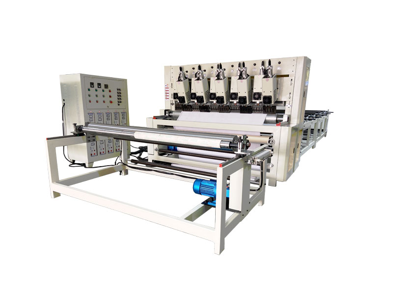 整機由壓花復合主機、超聲波控制柜、成品復卷機、存放織物支架組成。